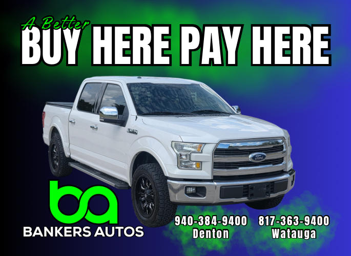 Thank you for checking out our 2015 Ford F-150. At Bankers Autos, we pride ourselves on offering high quality pre-owned vehicles like this Ford. Our B.A. mission is to provide GOOD CARS to GOOD PEOPLE just like you! We specialize in Buy Here Pay Here financing. If you have no credit, or some bad credit, you have come to the right place. Bankers Autos is focused on where you are now and helping you MOVE FORWARD! We report to Experian and Equifax to help you rebuild your credit! We care about the person first, the car deal second. Bankers Autos stocks inventory like this F-150 with affordable prices and payments as a top priority. Please call us at 940-384-9400 (Denton) or 817-363-9400 (Watauga) to discuss your unique needs and situation. We look forward to serving you!