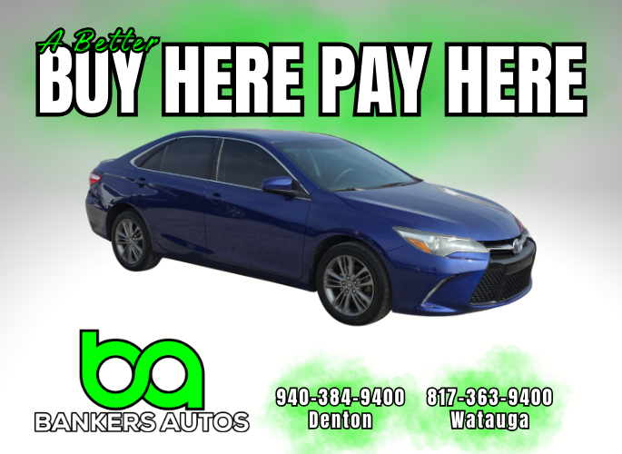 Thank you for checking out our 2016 Toyota Camry. At Bankers Autos, we pride ourselves on offering high quality pre-owned vehicles like this Toyota. Our B.A. mission is to provide GOOD CARS to GOOD PEOPLE just like you! We specialize in Buy Here Pay Here financing. If you have no credit, or some bad credit, you have come to the right place. Bankers Autos is focused on where you are now and helping you MOVE FORWARD! We report to Experian and Equifax to help you rebuild your credit! We care about the person first, the car deal second. Bankers Autos stocks inventory like this Camry with affordable prices and payments as a top priority. Please call us at 940-384-9400 (Denton) or 817-363-9400 (Watauga) to discuss your unique needs and situation. We look forward to serving you!